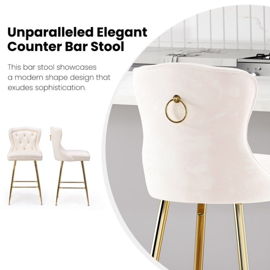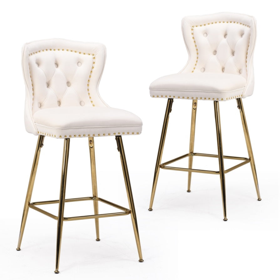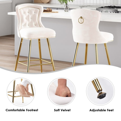 Bar Stools Set of 2, Velvet Counter Height Bar Stools with Metal Legs, Button Tufted and Nailheads T3623P363044