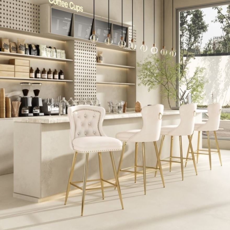 This height bar stool is made of soft velvet fabric. The seat cushion is filled with high-density sponge, which has good resilience and breathability. So you won't feel any discomfort when sitting for a long time.