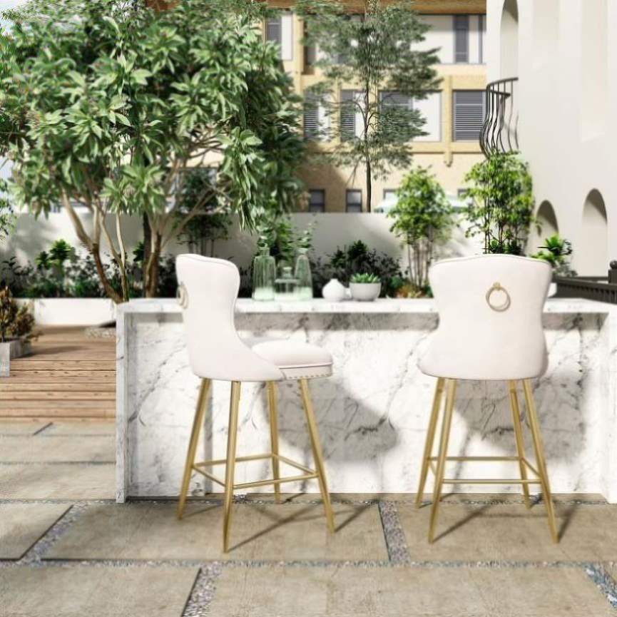 Multi-scenario UsageOur upholstered high stools can be well used in the dining room, home bar, kitchen, bar, club, cafe, restaurant, and other scenes according to your needs. The metal loop behind the bar stools can be conveniently pulled out.