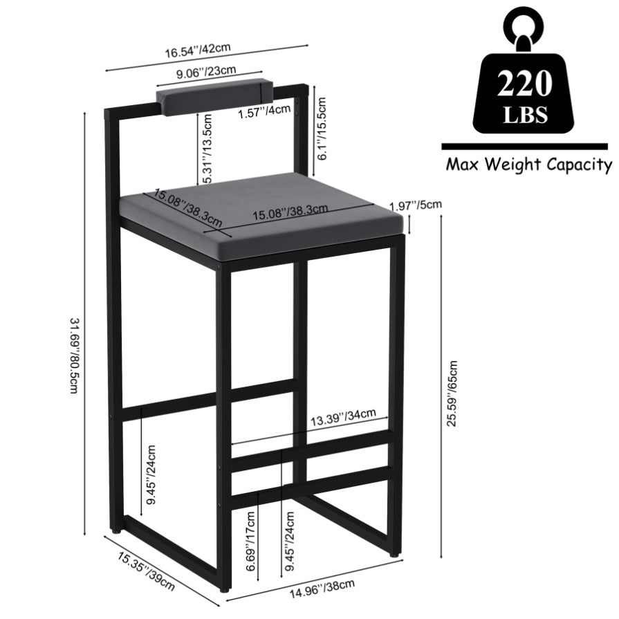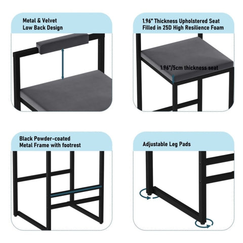 Enhance your home or commercial space with our elegantly designed velvet barstools, blending premium comfort with industrial-chic durability. Sink into velvet relaxation thanks to the generously padded seat cushion and ergonomic built-in footrest, expertly crafted with high-density foam and luxuriously soft, stain-resistant velvet that repels spills and scratches for effortless maintenance. Built to withstand daily use, each stool features a robust solid metal frame with a matte black powder-coated finish, offering exceptional stability and a 220-pound weight capacity while complementing both modern kitchens and sleek contemporary bars. The minimalist silhouette showcases meticulous details and a versatile counter height (25.59"), making these stools ideal for breakfast nooks, kitchen islands, home bars, or commercial settings like cafes and bistros. Assembly is a breeze – be ready to style your space in under 15 minutes with included tools and illustrated instructions. Whether hosting dinner parties, enjoying morning coffee, or furnishing a boutique eatery, these multifunctional stools deliver style and substance. Elevate your interior with a perfect fusion of cozy texture and metallic edge – a seating solution that promises lasting comfort and timeless appeal.