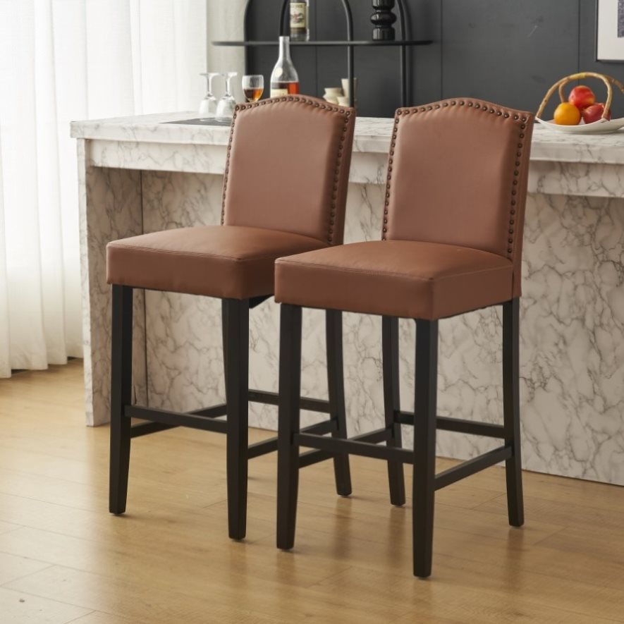 Barstools Set of 2, Counter Height Upholstered Bar Stools for Kitchen Island, Brown Rubberwood Legs N779P254675L