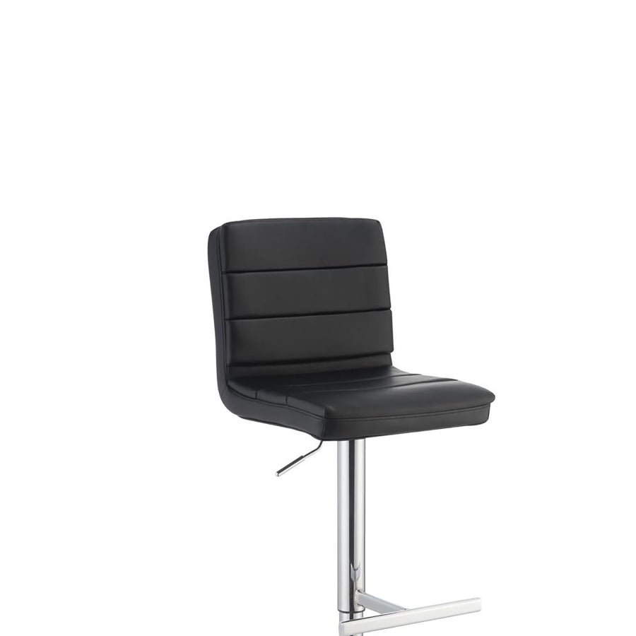 This bar stool takes into account that not all people come in the same height. Its adjustable lever offers a comfortable seat for visitors and family members while looking sharp and chic, with its ultra-modern black faux leather and chrome finish. Sold in a set of two.