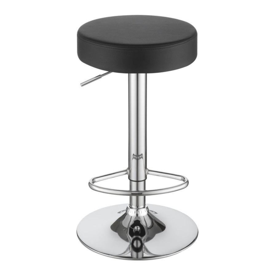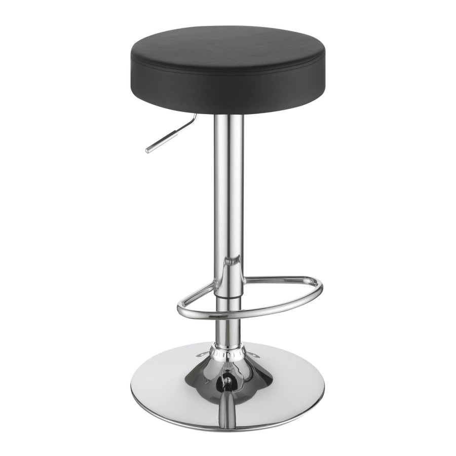 Brighten your bar with this distinguished chrome-base bar stool. Its adjustable height due to its hydraulic mechanism lets you wine and dine in comfort and at home.