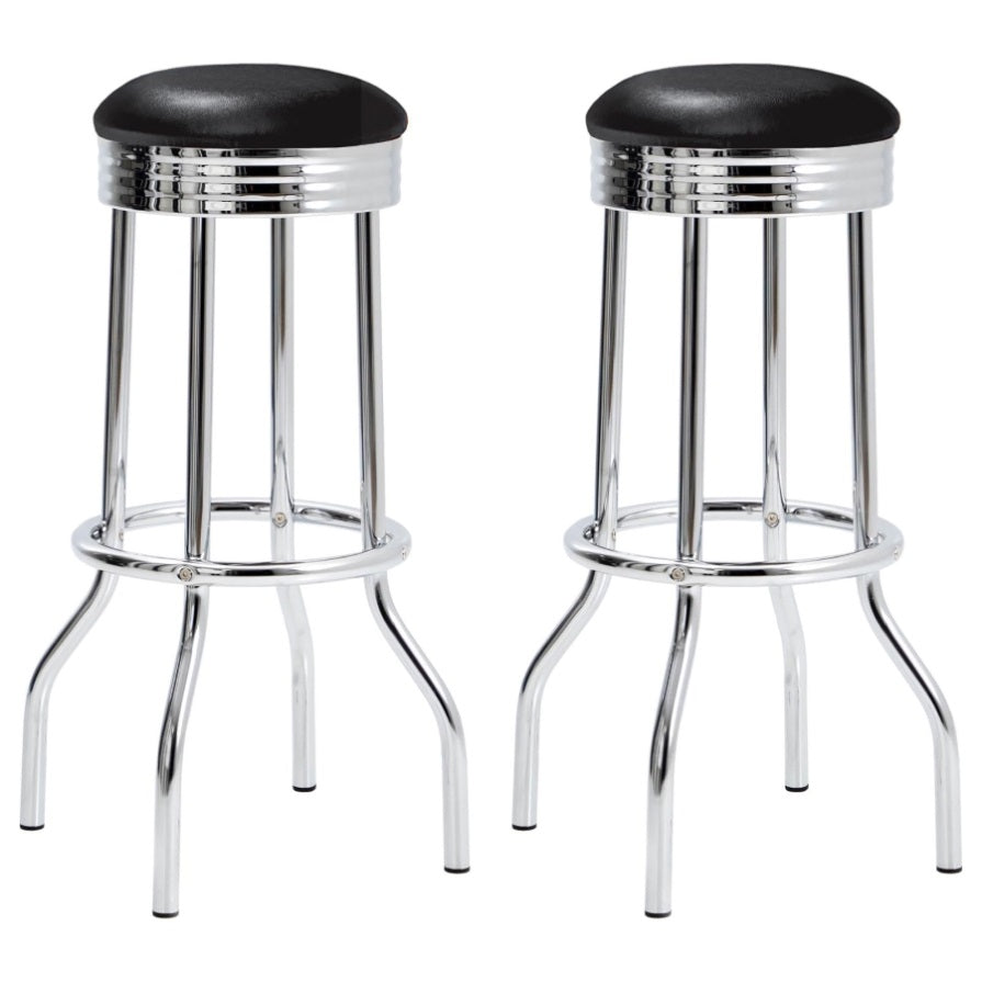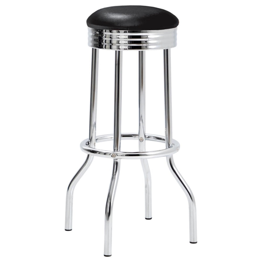 Styled with a chrome seat rim and legs, contributing to the retro effect and enhancing the stool's visual appeal