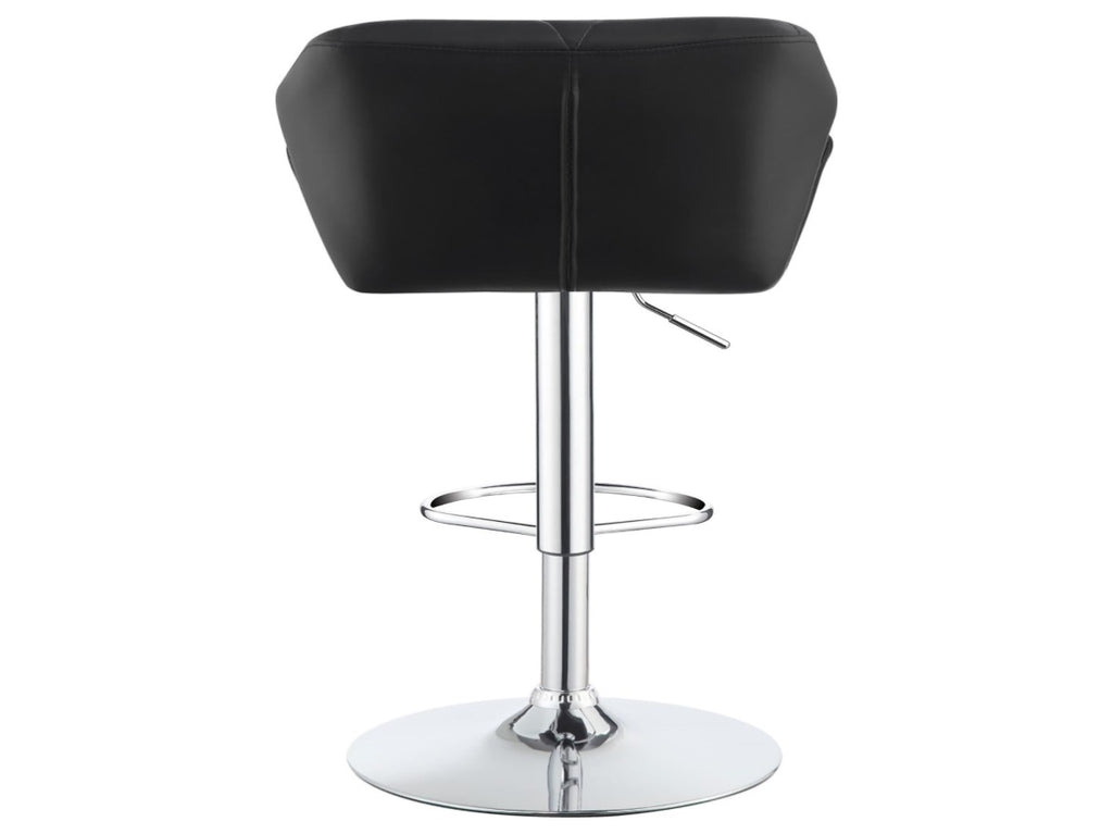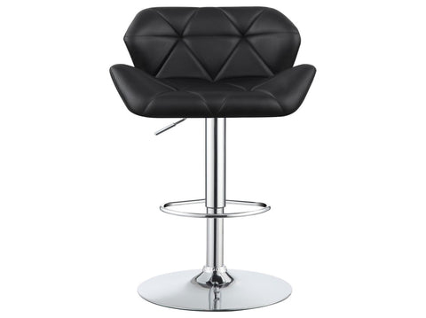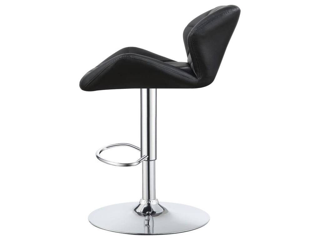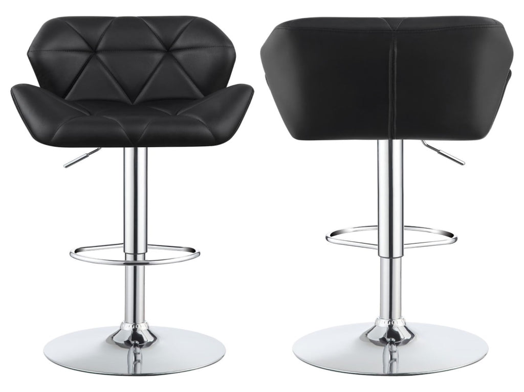 A clean finish perched atop a sleek silver base grants this adjustable upholstered bar stool a fresh modern feel. Its sleek hydraulic mechanism coupled with its star-patterned upholstery makes this stool an ideal feature for your modern den.