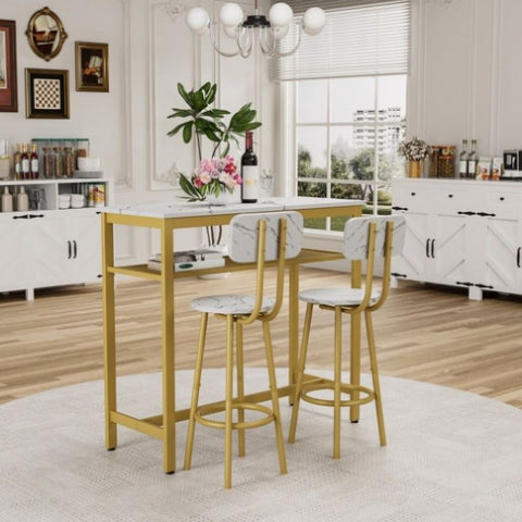 Dining Table Set with 2 Stools,3 Piece Counter Height for Kitchen, Living Room, Small Apartment W578P304320