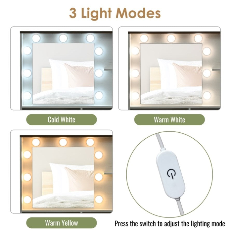 - Adjustable Hollywood Bulbs: Equipped with 9 Hollywood LED bulbs, 3 lighting modes can be changed to cold light, natural light or warm light, provide the perfect light for your make-up and meet your different make-up needs.