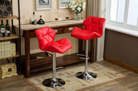 Glasgow Contemporary Tufted Adjustable Height Hydraulic Red Bar Stools, Set of 2