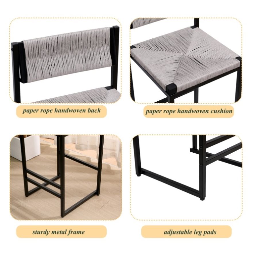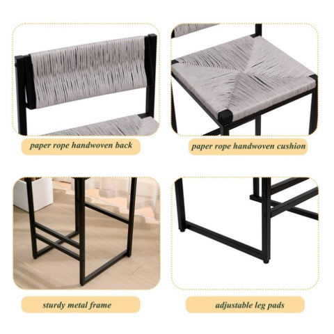 Gray Set of 2 Hand Weave Bars with Back Counter Height Bar Chairs Paper Rope Woven Dining W1757138690