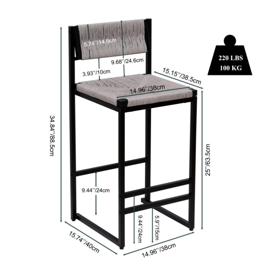Perfect Size & Capacity: These stools measure 14.96"(L) x 15.15"(W) x 34.84''(H) and have a maximum weight capacity of 220lbs, making them suitable for most people. Sold in sets of 2, carton with a total weight of 24.9lbs.