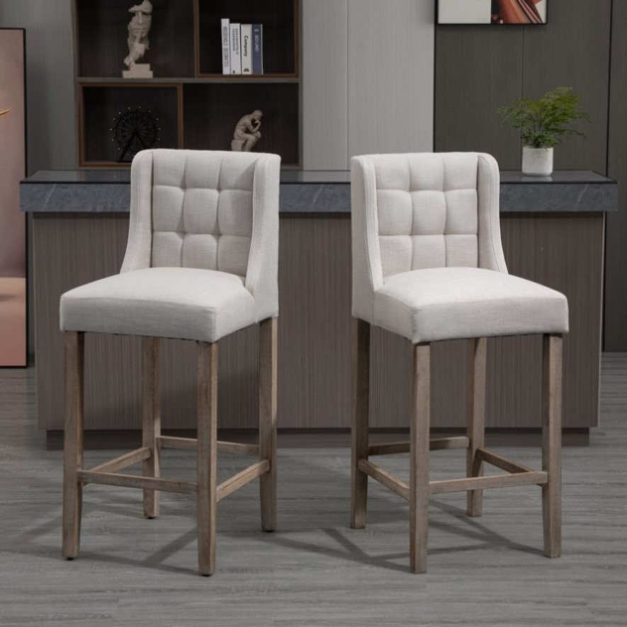 • - Linen-touch polyester fabric and rubberwood legs for easy cleaning and durability