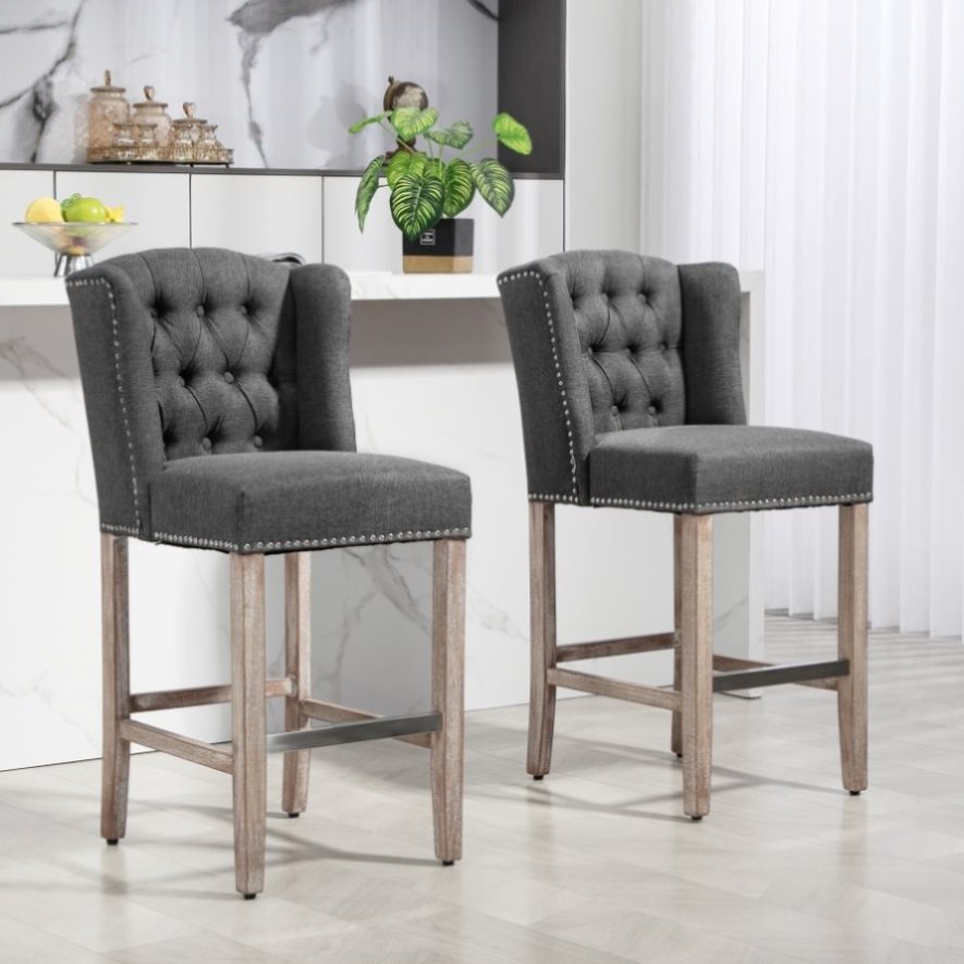 - - Linen-look fabric bar chairs, suitable for counters, coffee shops, pubs, and home bars