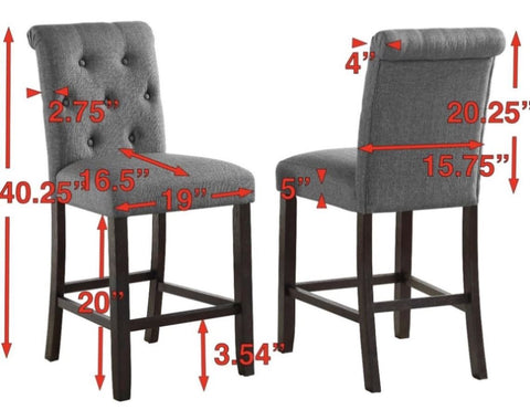 Leviton Solid Wood Tufted Asons Counter Height Stool, Set of 2, Grey T2574P165115