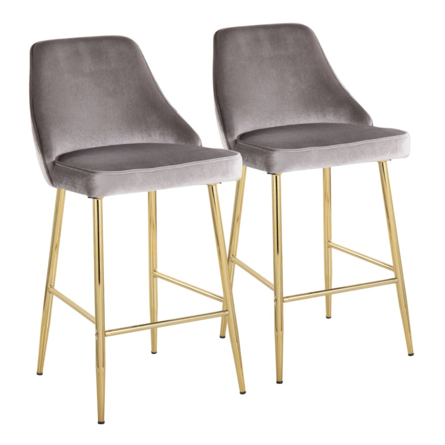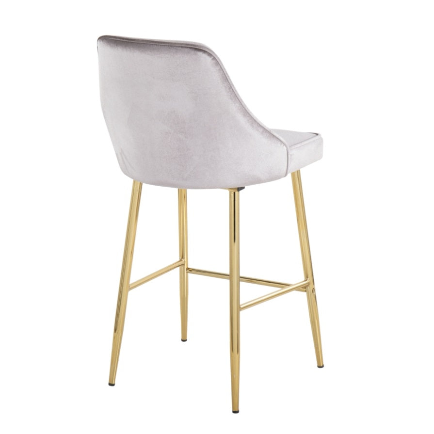 Marcel Contemporary/Glam Counter Stool in Gold Metal and Silver Velvet by LumiSource - Set of 2 B202P221783