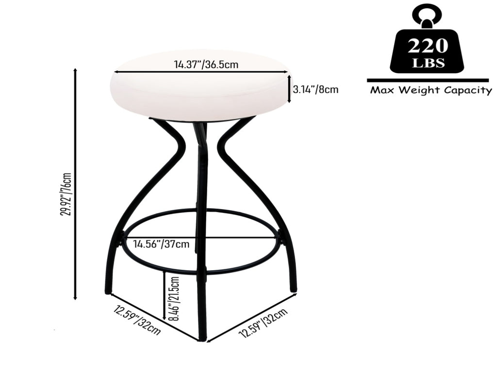 Elevate your kitchen, bar, or dining space with this sleek set of 2 round velvet bar stools, designed to blend modern elegance with everyday comfort. Perfect for counter-height islands, breakfast bars, or casual dining setups, these upholstered stools feature plush velvet seats in a soft creamy white hue, adding a touch of sophistication to any decor. The backless design ensures a space-saving profile, allowing the stools to tuck neatly under counters when not in use.