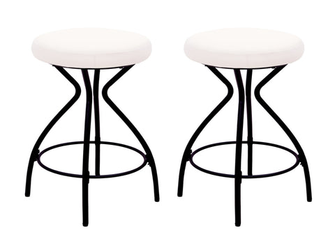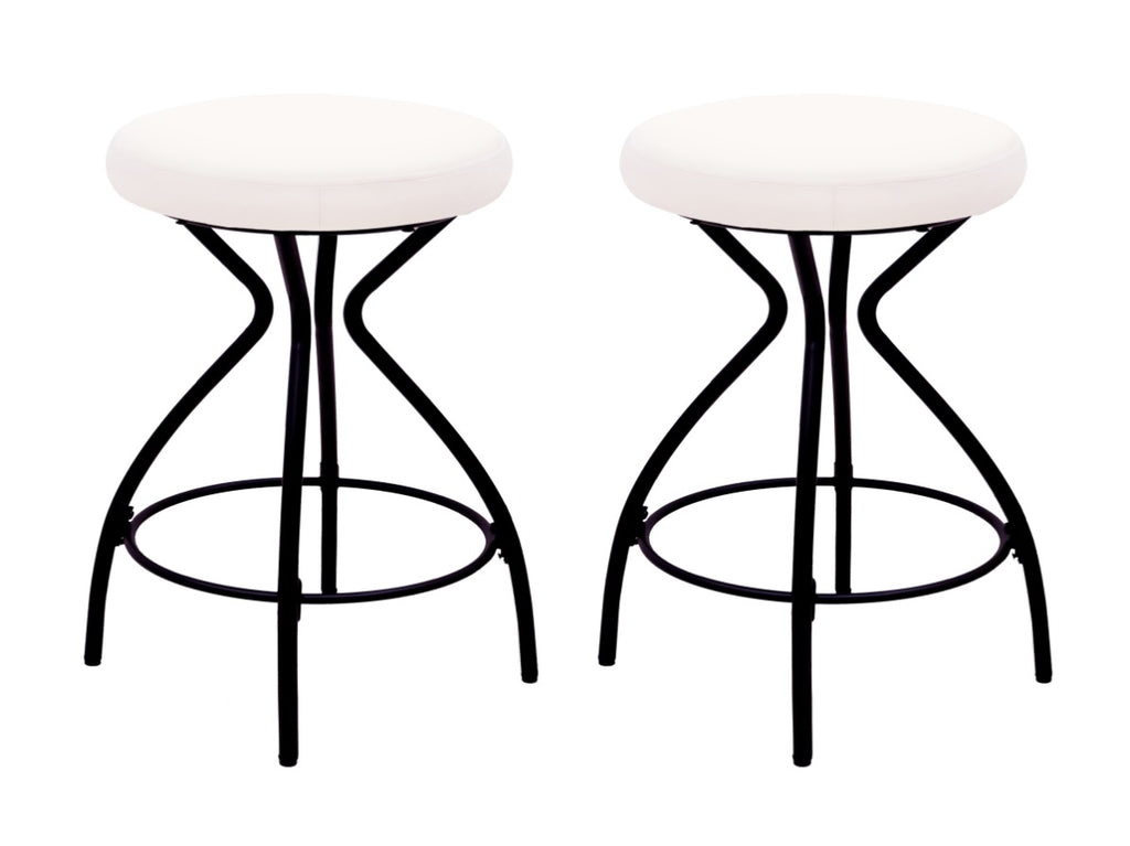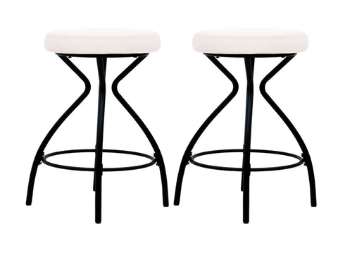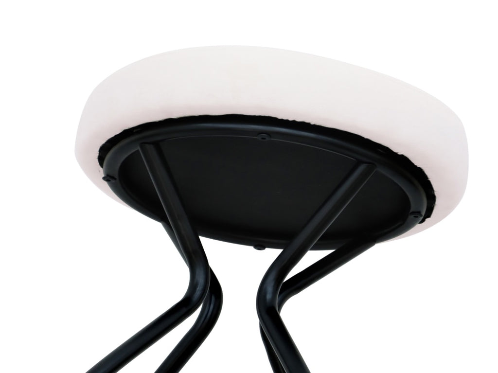 Stylish Set of 2 Bar Stools: Elevate your kitchen or bar area with this modern set of 2 backless bar stools featuring a sleek black power-coated frame and a plush, round velvet seat in creamy white for a touch of elegance.