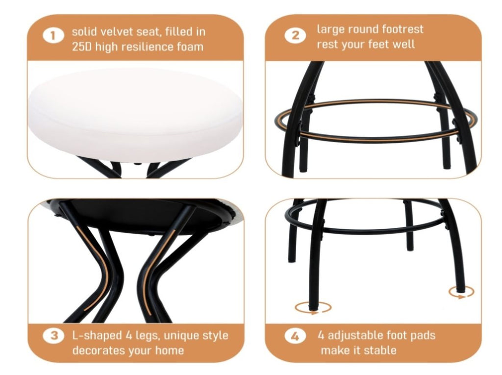 Durable & Versatile: The sturdy black power-coated frame ensures long-lasting durability, while the neutral creamy white velvet complements any kitchen, bar, or dining room decor.