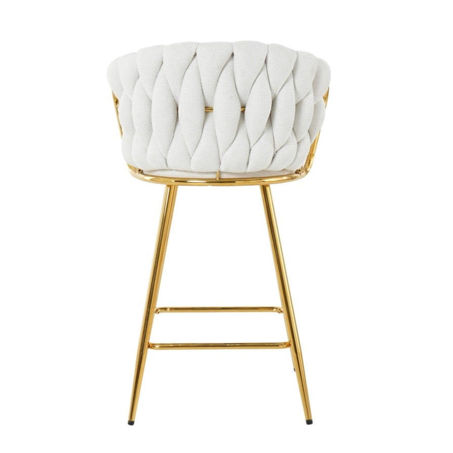 Modern design High stool Gold Plated legs Kitchen Dining White linen bar chair, suitable for Cafe W210P201267