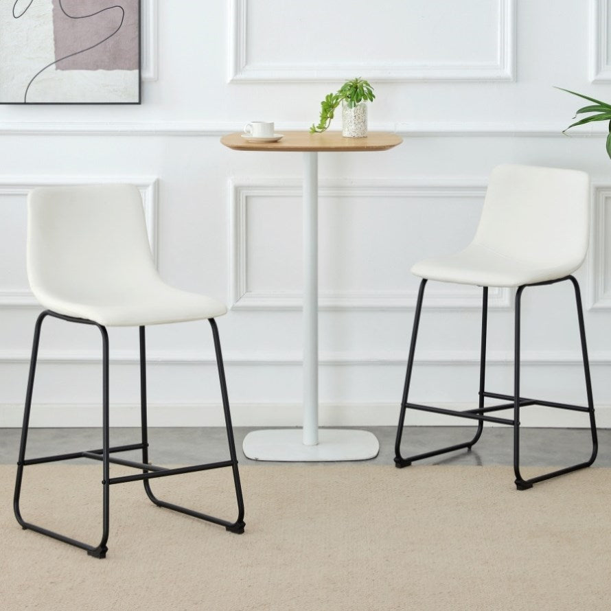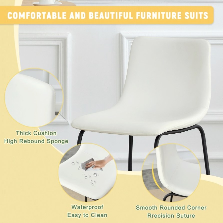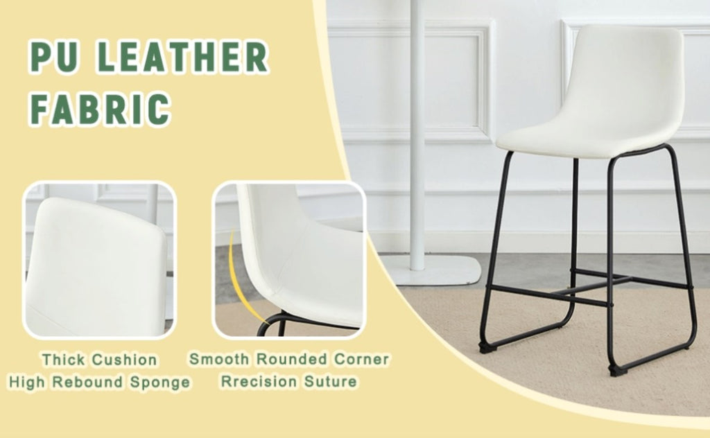 : This white bar stool made of PU material features a design with a strong sense of modernity, adding a fashionable touch to your bar or kitchen island.