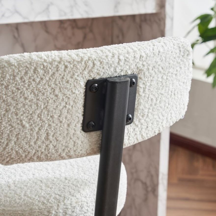 Cozy Bouclé UpholsteryFeaturing soft and textured bouclé fabric, these bar chairs provide a plush, comfortable seating experience. The breathable material enhances relaxation while adding a modern and sophisticated touch to your home.