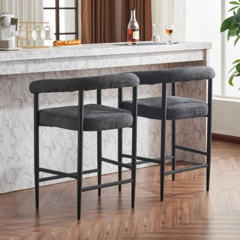Elevate your space with our modern upholstered bar stools, featuring a sleek black metal frame and plush boucle fabric. The minimalist aesthetic adds a sophisticated touch to your kitchen, dining area, or home bar.