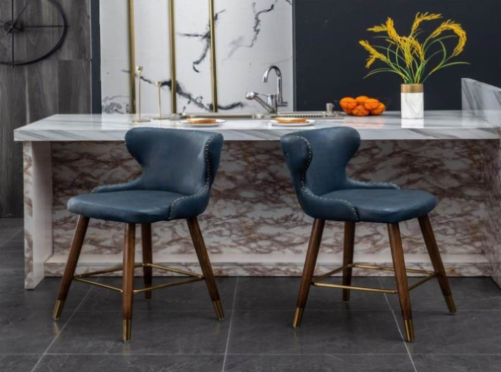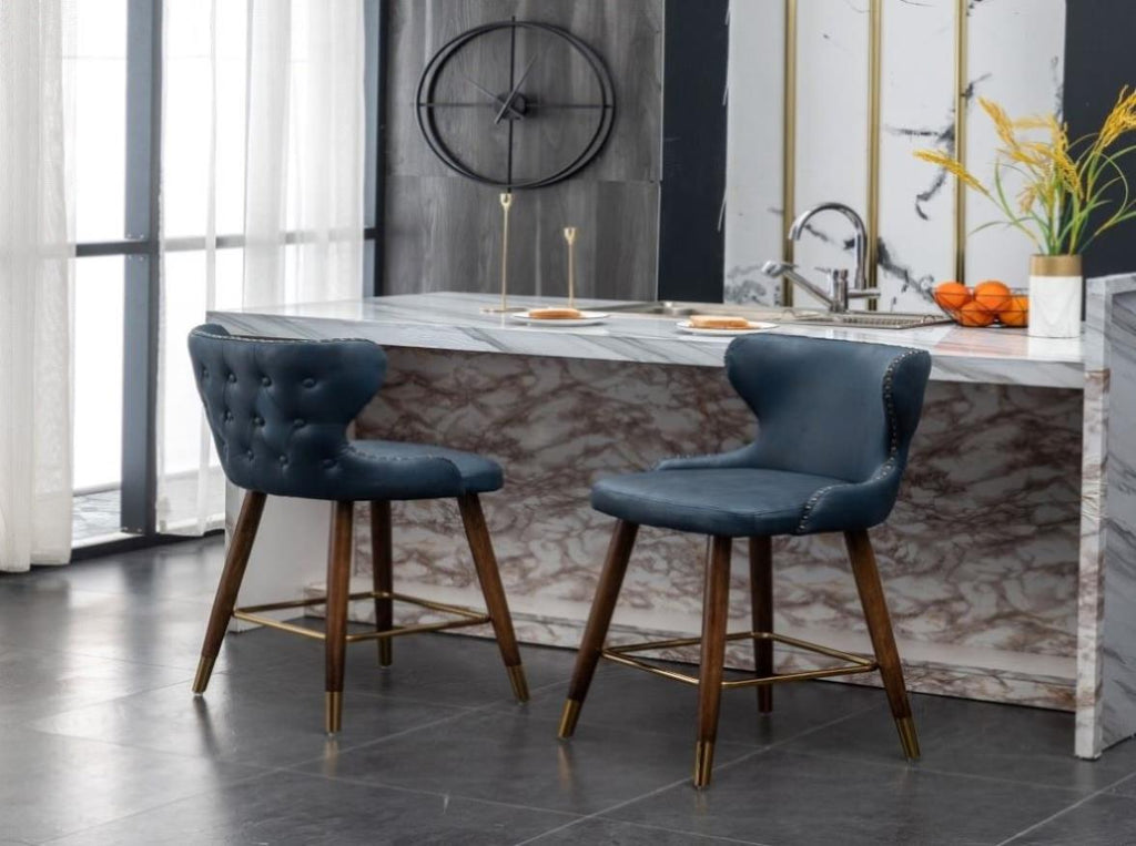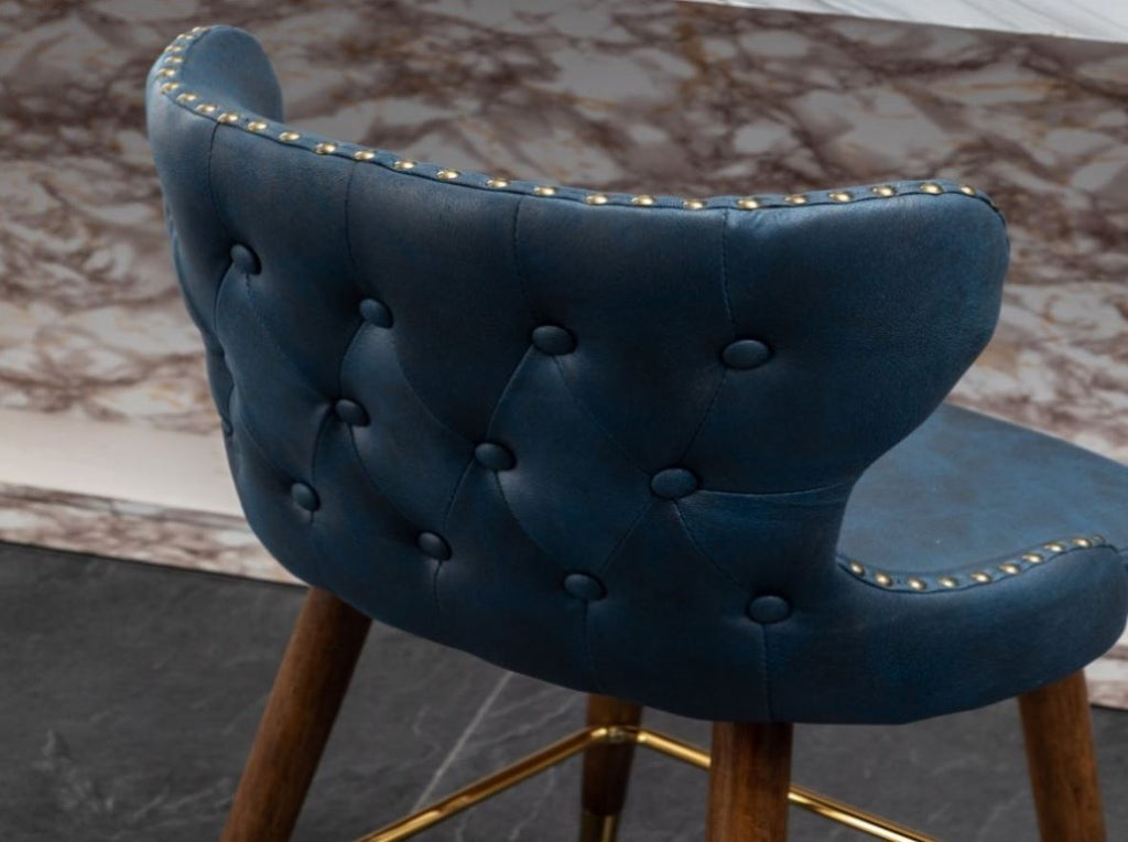 Nevis Mid-century Modern Faux Leather Tufted Nailhead Trim Counter Stool Set of 2, Blue T2574P165097