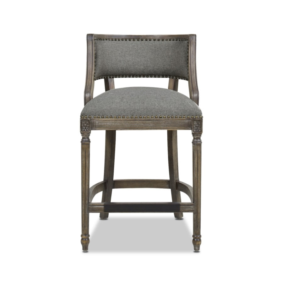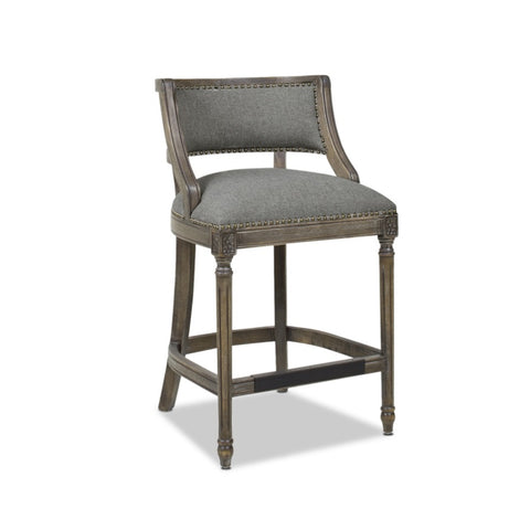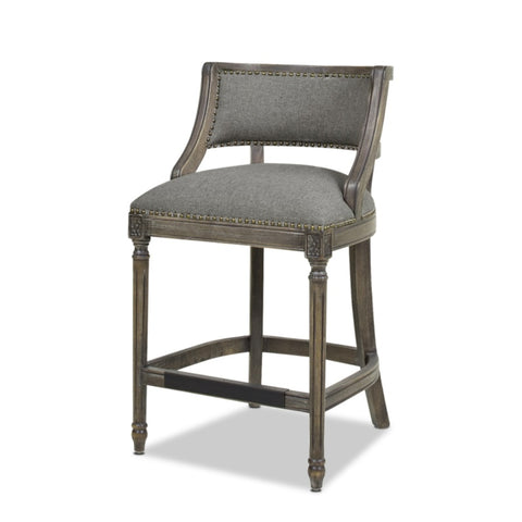Paris 26.5" Farmhouse Counter Height Bar Stool with Backrest, Heathered Grey Linen B2719P238378