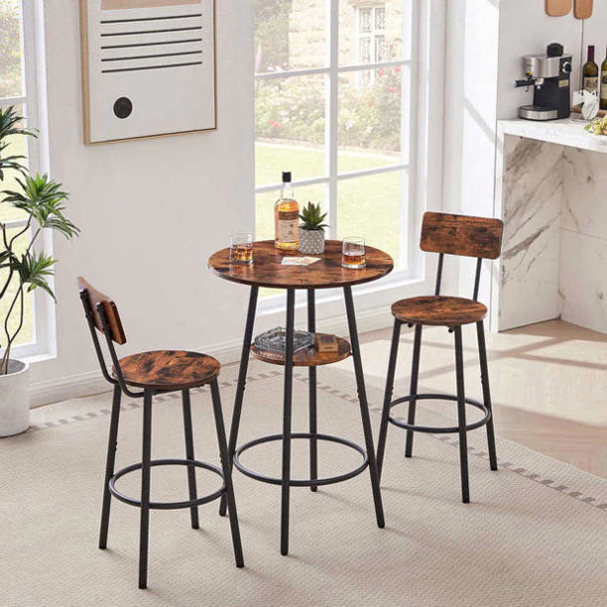 Round bar stool set with shelves, stool with backrest Rustic Brown, 23.6'' Dia x 35.4'' H W116294524