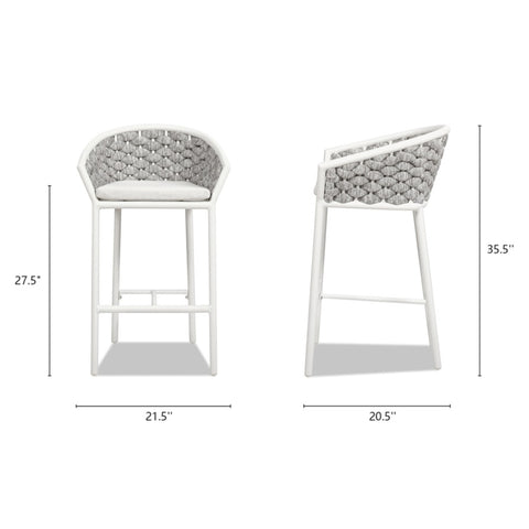 Rowan 27.5" Rope Barrel Low Back Patio Counter Stool, Set of 2, Optic White Acrylic B2719P245992