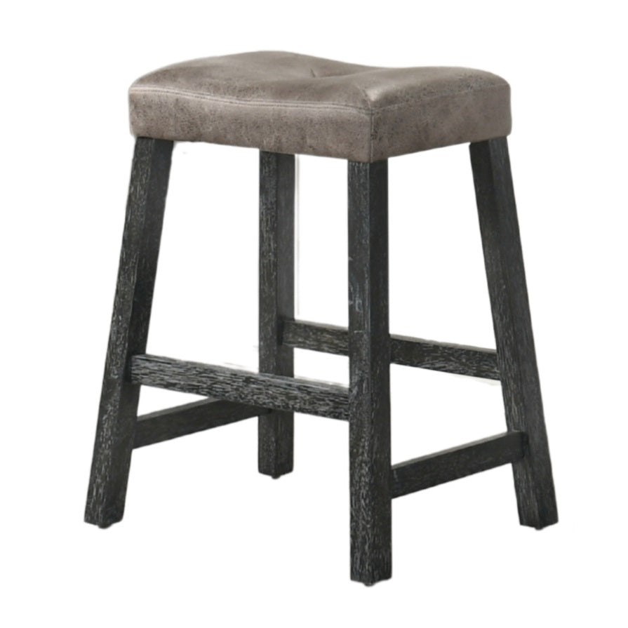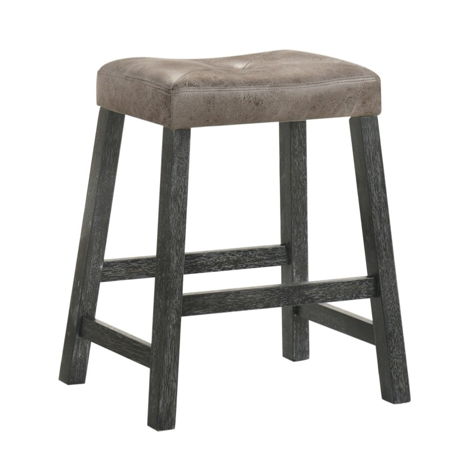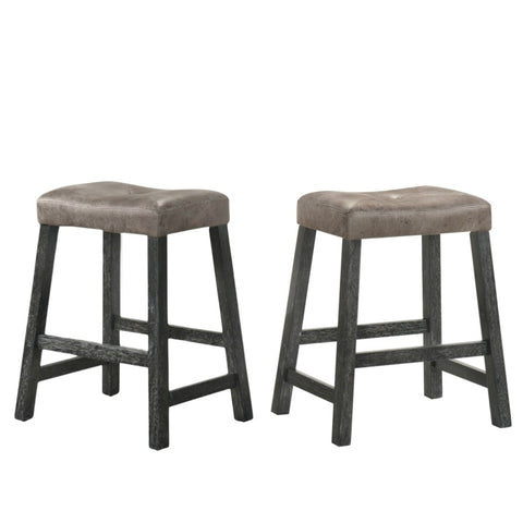 Rustic Backless Counter Stool Set of 2 25 Inch Wooden Farmhouse Barstool with Brown Leather Seat, W2537P298998