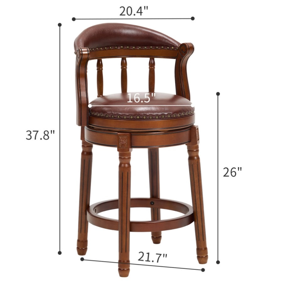 Seat height 26.5'' Cow top Leather Wooden Bar Stools, 360 Degree Swivel Bar Height Chair with Backs 41697964