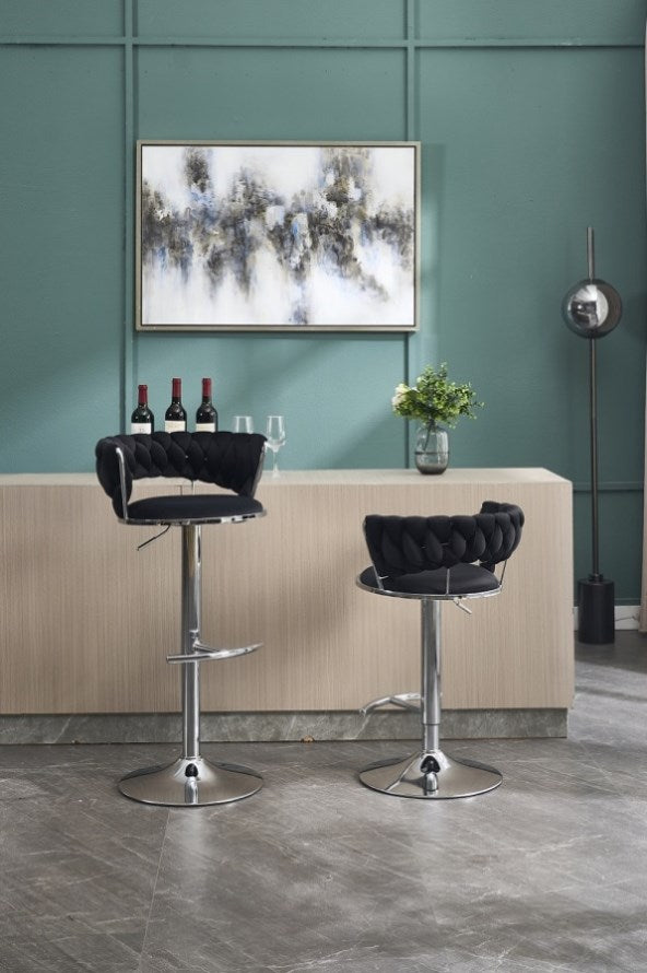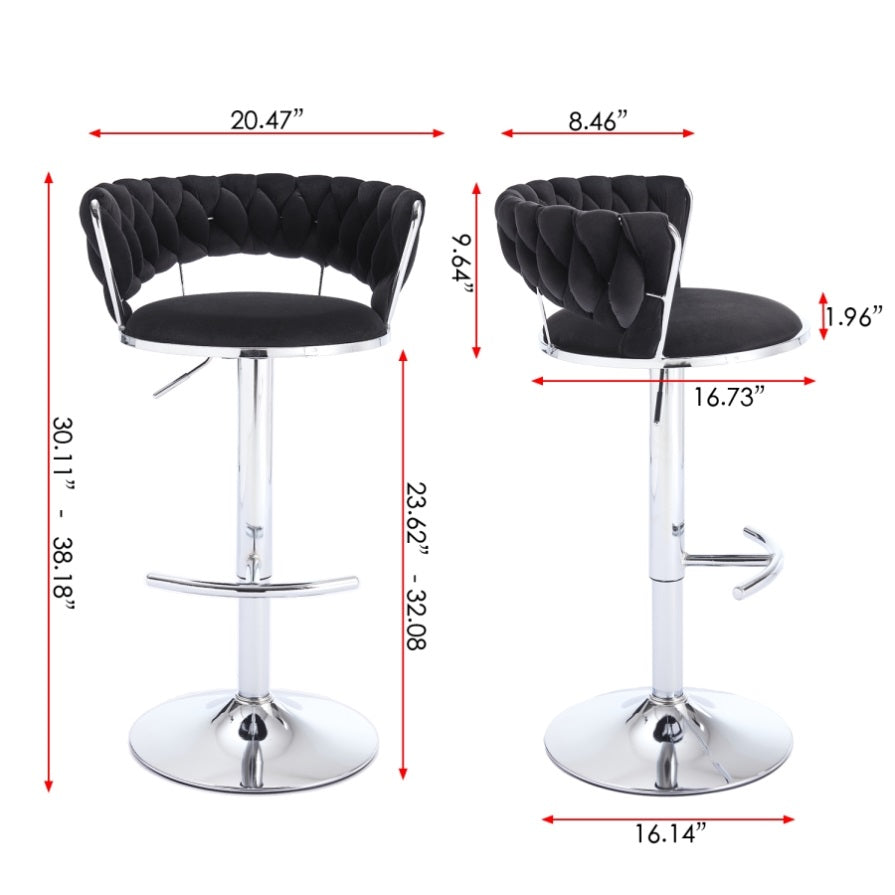 Set of 2 Bar Stools,with Chrome Footrest and Base Swivel Height Adjustable Mechanical Lifting Velvet 06163540