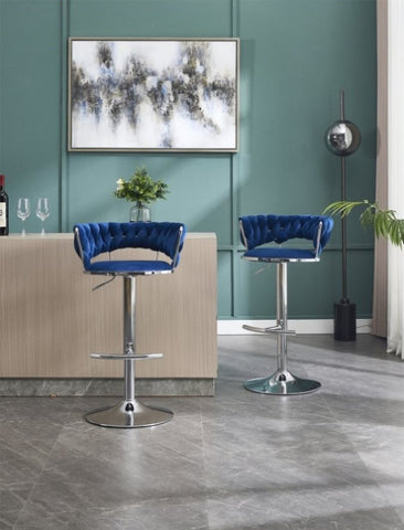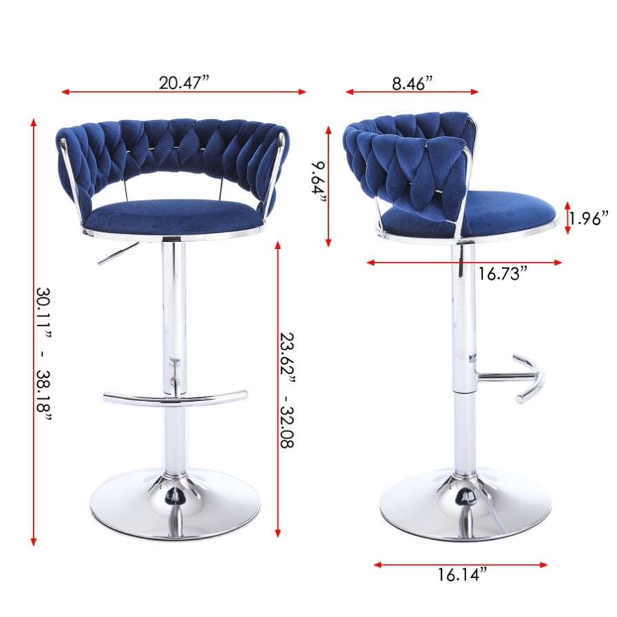 Set of 2 Bar Stools,with Chrome Footrest and Base Swivel Height Adjustable Mechanical Lifting Velvet 21221220