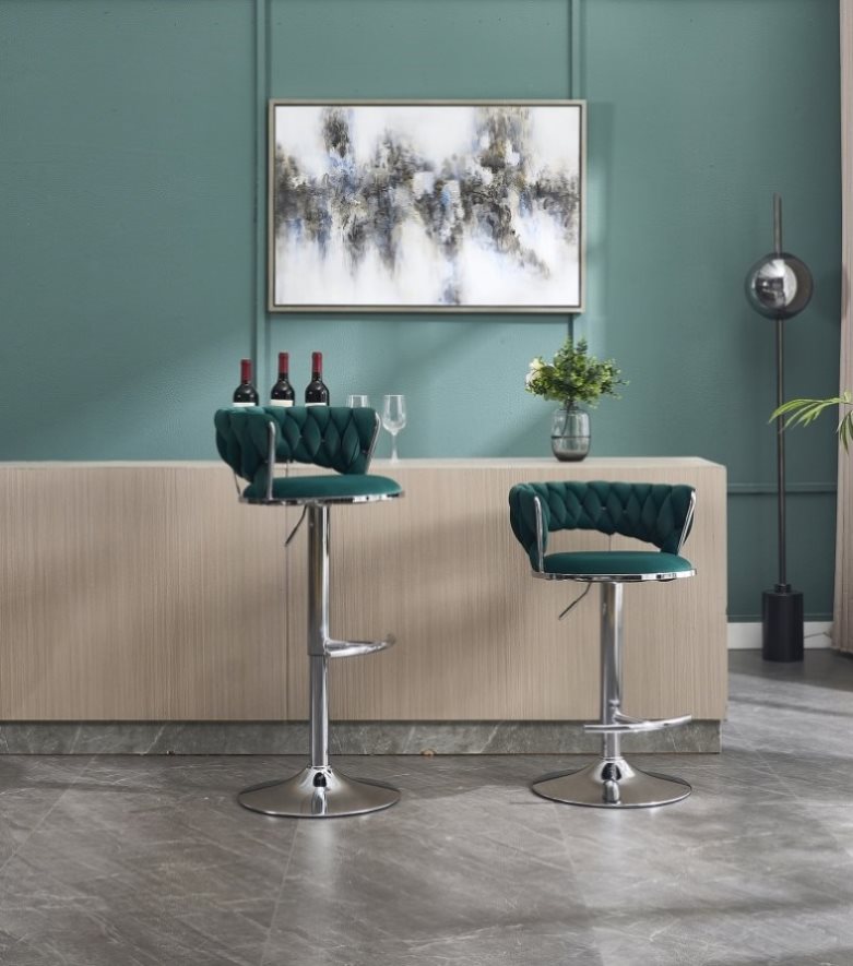 Set of 2 Bar Stools,with Chrome Footrest and Base Swivel Height Adjustable Mechanical Lifting Velvet W1249P247739