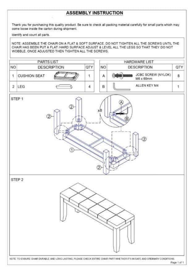 Product Dimensions: Bench : 48" X 16.5" X 20" H