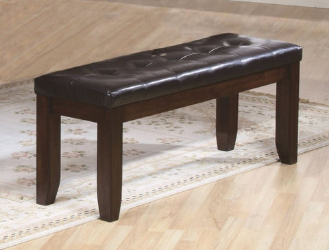 Product Description: This bench adds great seating to complement the rectangular dining table. The tufted upholstery seat with the look of linen fabric adds chic sophistication to this contemporary-style bench with solid wood and veneer made.