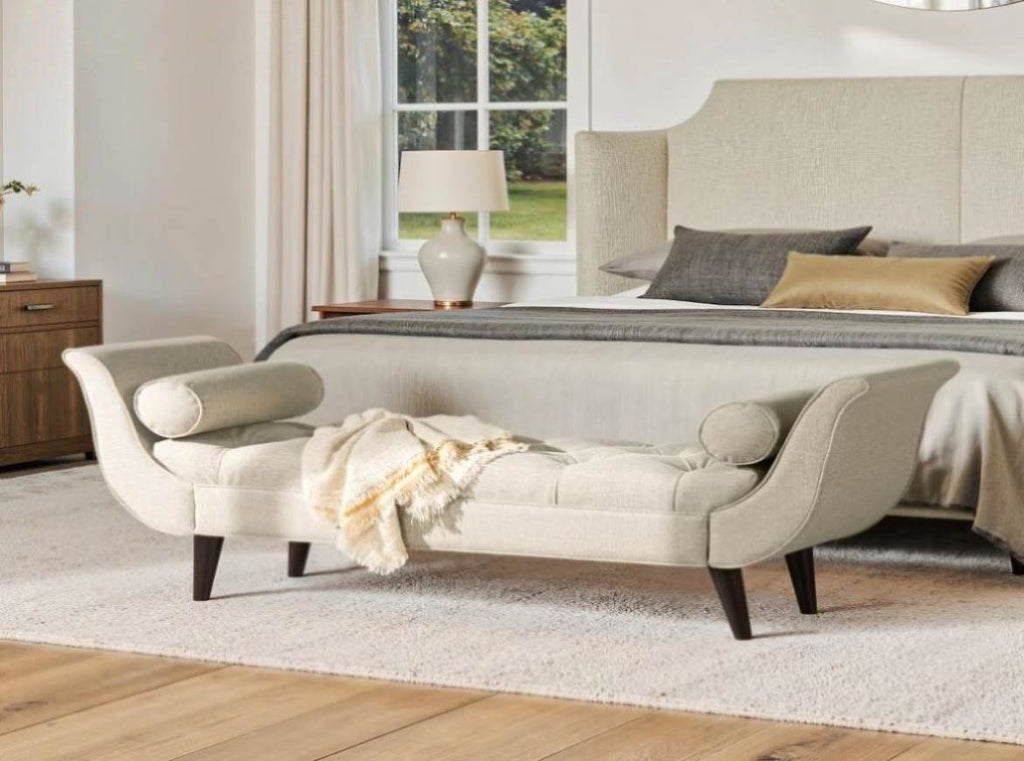 Alma Tufted Flared Arm Entryway Bench Taupe Polyester B2719P364405
