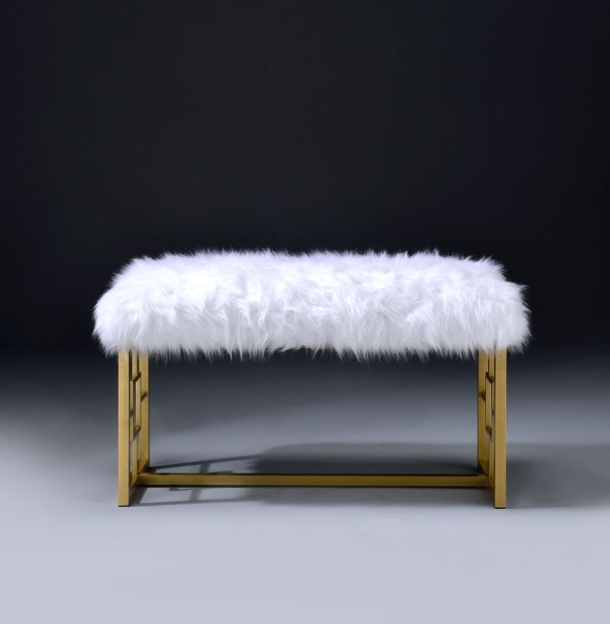 Bagley II White Faux Fur & Gold Finish Bench B2726P278575
