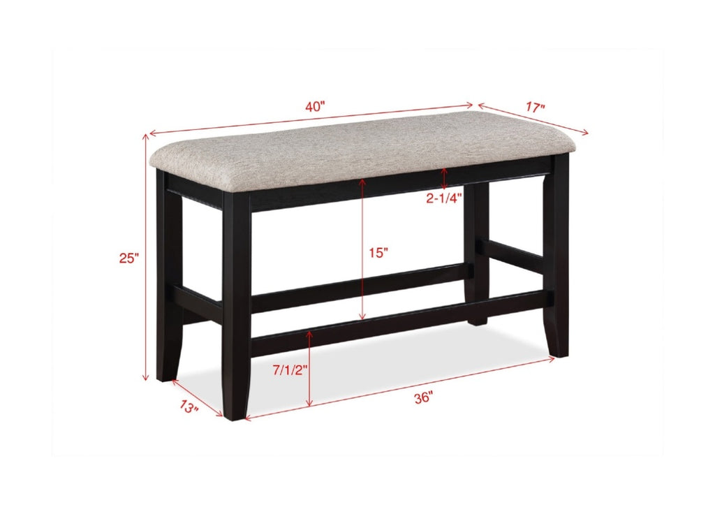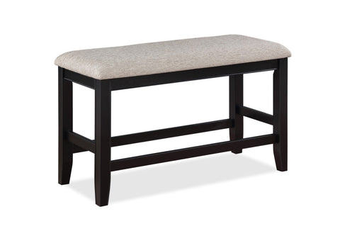 Product Description: This bench will be a perfect choice in your dining room. It features upholstered seating, straight legs, and a brown and grey finish. Pair with the matching counter height table and stools to create a fun set.