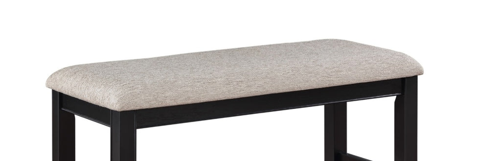 Farmhouse Style 1pc Black Light Gray Counter Height Bench Footrest Upholstered Seat Wooden Furniture B011P149003