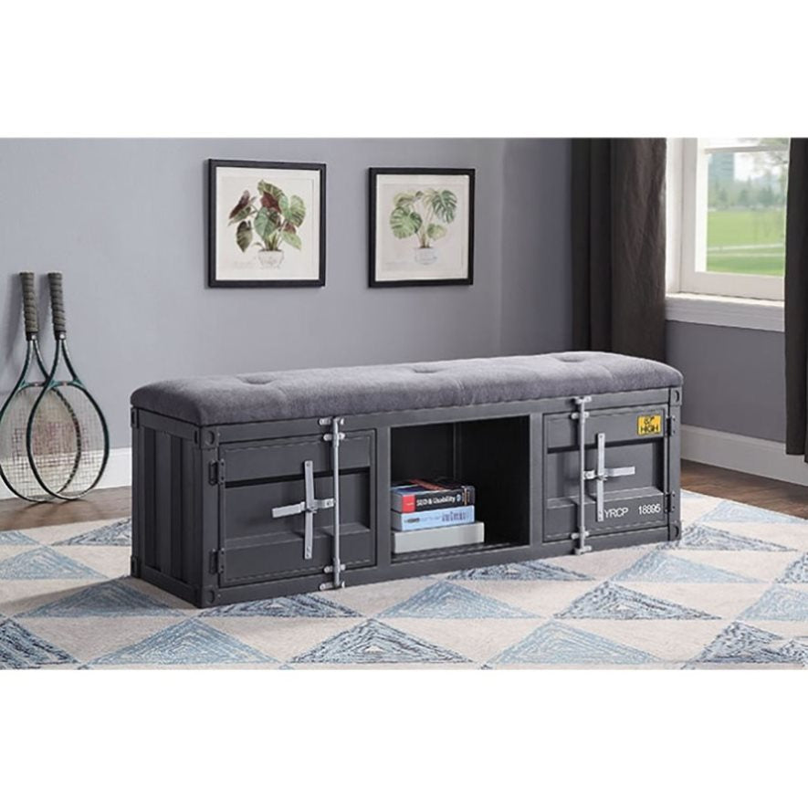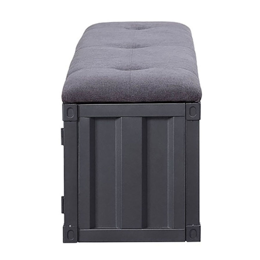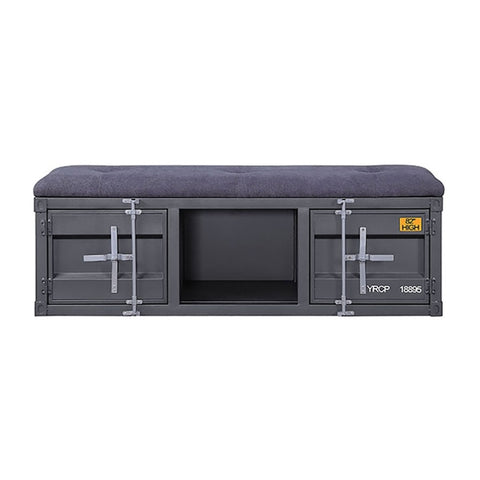 Modern industrial storage bench with a sleek and functional design, combining contemporary style with rugged elements to create a versatile piece for your entryway or living room
