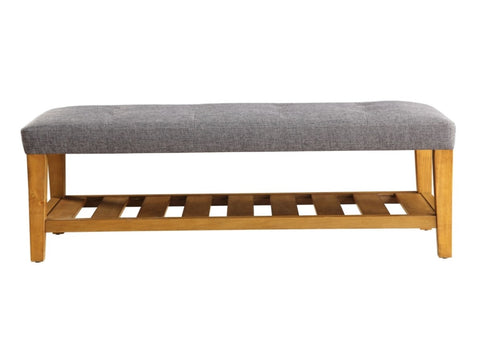 Grey and Oak Tufted Padded Seat Bench B062P189180