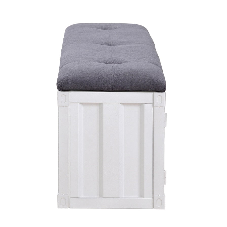 Upholstered seat in grey offers both comfort and style, providing a cozy spot to sit while putting on or taking off your shoes