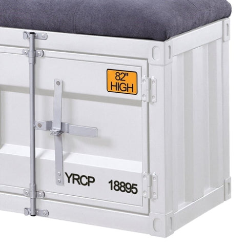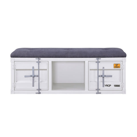 This modern industrial storage bench combines contemporary style with rugged elements, making it a versatile piece for your entryway or living room. The upholstered grey seat offers comfort and style, while the cabinet with two metal doors provides ample storage space, an open shelf adds extra storage or display options, and a full-length container lock ensures the security of your items.