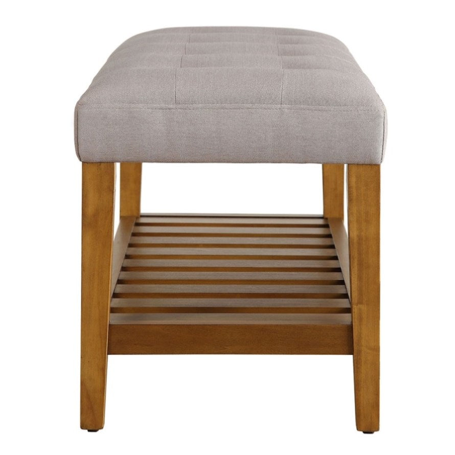 Light Grey and Oak Tufted Padded Seat Bench B062P189177
