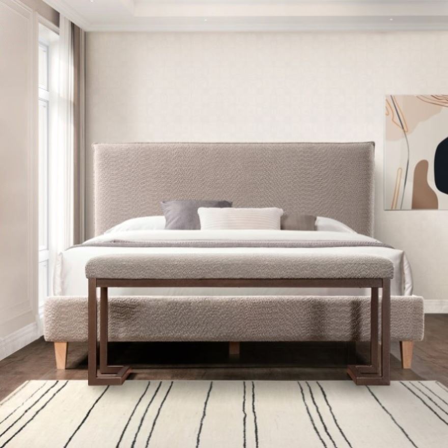Introducing our chic upholstered bench, a fusion of modern design and lifestyle comfort. The sleek metal frame ensures durability, while the boucle finish adds a touch of luxury. This bench effortlessly balances hard and soft elements, making it a versatile statement piece for any space. Whether you're creating a cozy corner or enhancing your entryway, it's a stylish yet durable addition that brings fashion and function together seamlessly. Upgrade your living space with this contemporary lifestyle bench that embodies both elegance and everyday practicality.