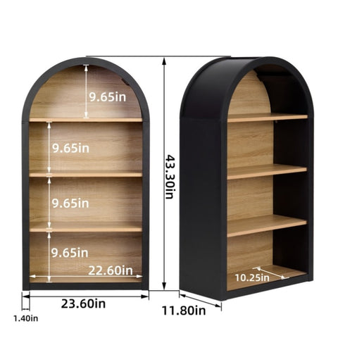4-Tier Black Arched Bookshelf, 43" Tall Arched Bookcase with Storage Shelves W3123P333683