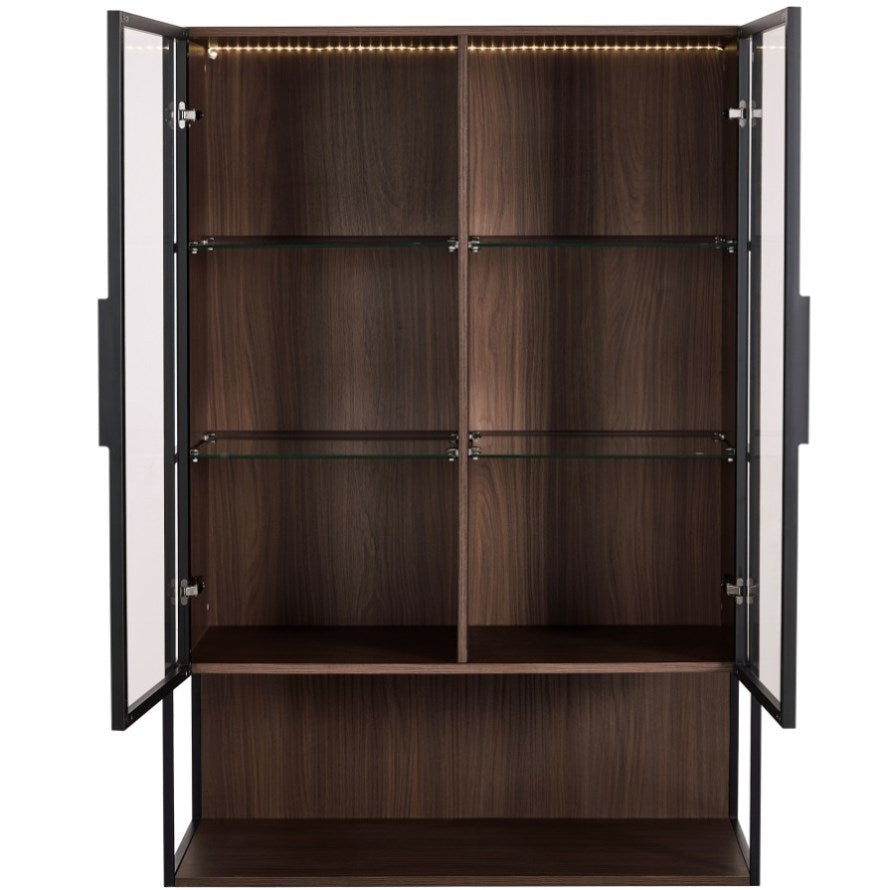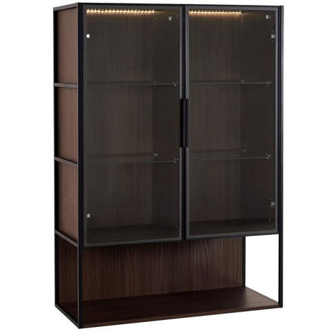 Elevate your home decor with this elegant lighted glass display cabinet. It features LED lighting, 4 tempered glass shelves, and two glass door for a sleek, modern look. The sturdy metal legs and two storage drawers provide both style and functionality.