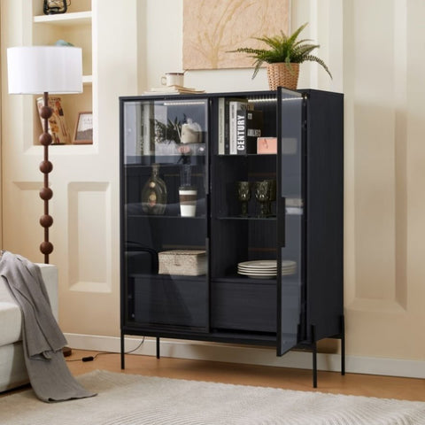 This cabinet combines practicality with modern elegance. It can be used as a display cabinet for fine china, medals, or collectibles in the living room. It also doubles as a dresser, bookshelf, media storage unit, or filing cabinet in offices, studies, or entryways. It helps you keep your belongings organized while enhancing the space with a touch of contemporary sophistication.