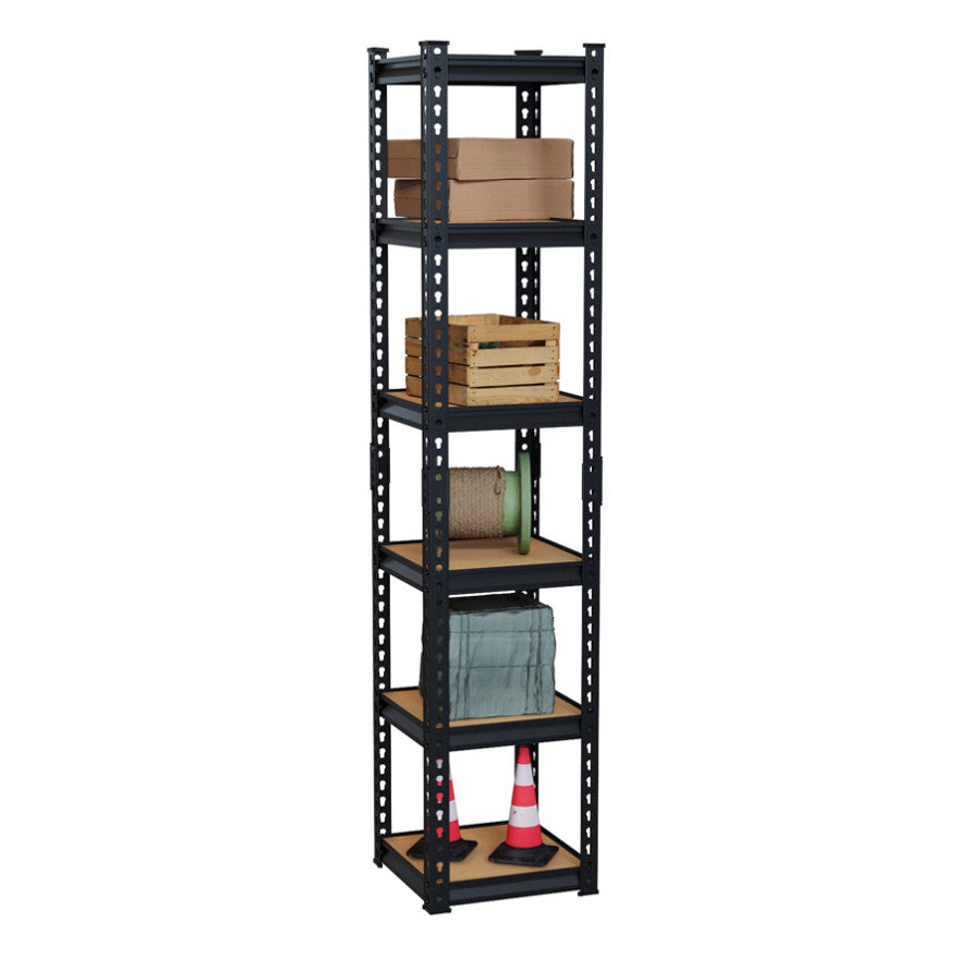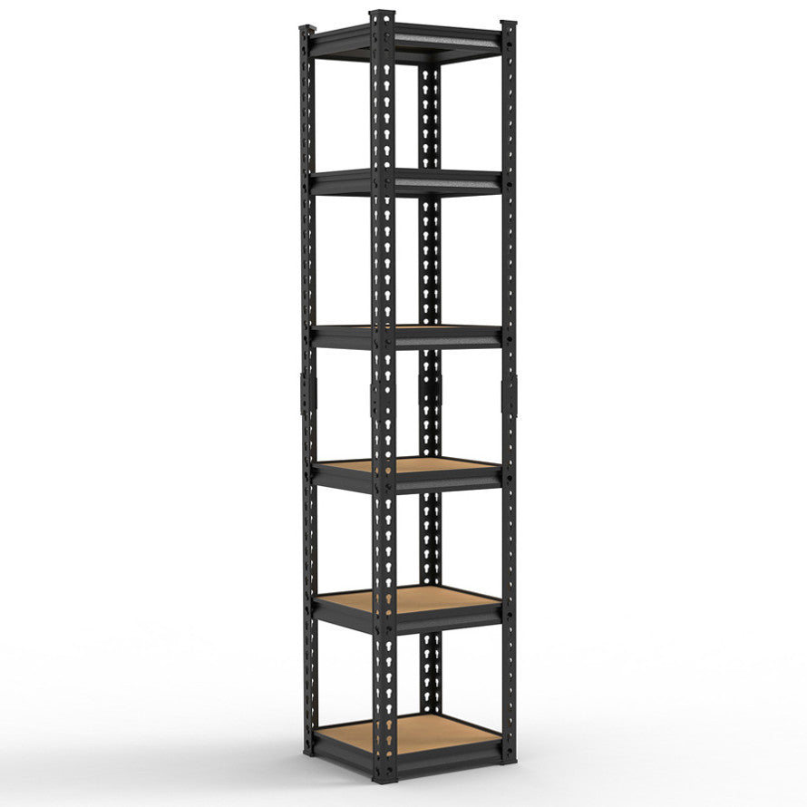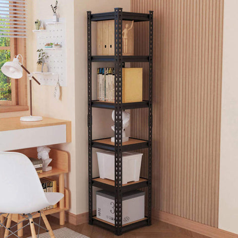 Meet the perfect storage solution for tight spaces with this sleek 6-Tier Adjustable Shelf Unit. Standing tall at 184cm while maintaining a compact 40x40cm footprint, this shelving unit maximizes vertical storage without consuming precious floor space. Crafted from durable black iron frames paired with warm wood-finish MDF shelves, it seamlessly blends industrial strength with rustic charm. The innovative gourd-shaped hole design allows you to customize all six shelf positions to accommodate items of various heights. Complete with an assembly glove and rubber mallet for tool-free setup, this versatile unit ships in flat-pack packaging (97×45×6.5cm, 9kg) and weighs just 7kg assembled. Ideal for displaying collectibles, organizing books, or storing essentials in any room.